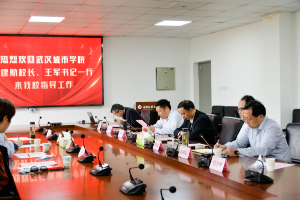 武汉城市学院领导一行对我校的热情接待表示感谢,对我校办学理念、办学方向、办学成绩给予高度评价,陈建勋院长、王军书记介绍了武汉城市学院师资队伍配备、学科建设、科研成果、教学改革、党建与政治思想工作等方面工作特色。