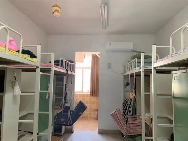 正在值岗的产教融合学院教工党员费凡同志带学生入住新宿舍