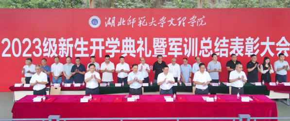 本网讯(通讯员 刘健美)9月28日上午,我校举行2023级新生开学典礼暨军训总结表彰大会。全体校领导,各职能部门、各学部(院)负责人,师生代表、全体新生辅导员及2023级全体新生和教官参加典礼。典礼由校党委书记杨邓红主持。