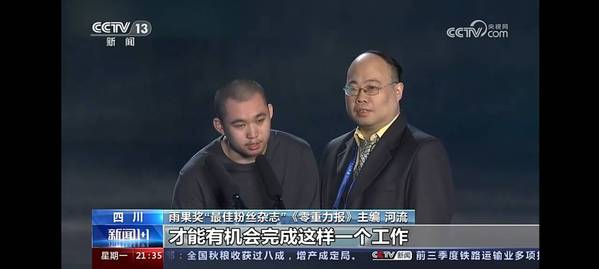 本网讯 10月21日,2023年雨果奖颁奖典礼在成都科幻馆“星云”举行,我校人文学部中文2205班学生温卓峰(笔名:河流)主编的《零重力报》杂志获得2023年雨果奖最佳粉丝杂志。
