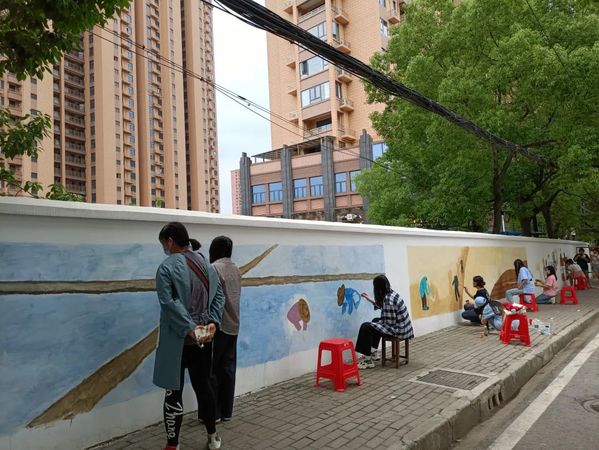 前不久,花湖社区在开展“一线协商 共同缔造”活动中,作为区政协委员、文理学院副院长的杨学斌,建议花湖街道和花湖社区共同打造花湖路,建设路边文化墙。经过协商,决定由文理学院的师生现场作画,美化花湖路,记录花湖农场的历史文化。