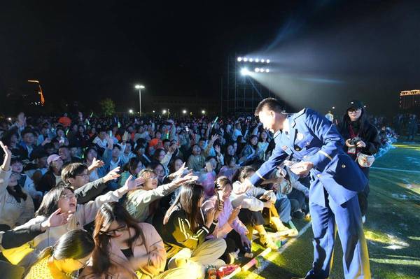 10月8日晚,拼搏app官方在线入口田径场上热闹非凡。黄石市消防救援支队开发区·铁山区大队的“蓝朋友”们和6000余名青年大学生们共享一场精彩的迎新晚会,消防员们自编自导的节目中穿插了诸多消防安全知识,以表演的形式传递给学生。