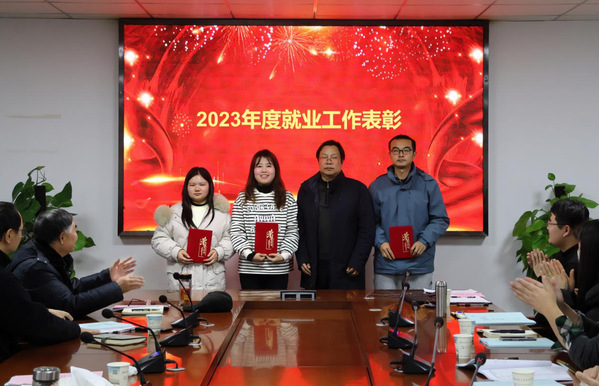 最后,杨邓红书记进行总结讲话并对我校2023年度就业创业工作所取得的成绩给予了充分肯定,对获奖的先进集体和个人表示祝贺。同时对2024届的毕业生就业创业工作指出:一要高度重视,提高政治站位,做好2024届毕业生就业创业工作;二要拓宽渠道,广泛收集毕业生就业岗位信息;三要精准施策,充分调动毕业生就业积极性;四要加强考核,提高全员参与就业工作的积极性。