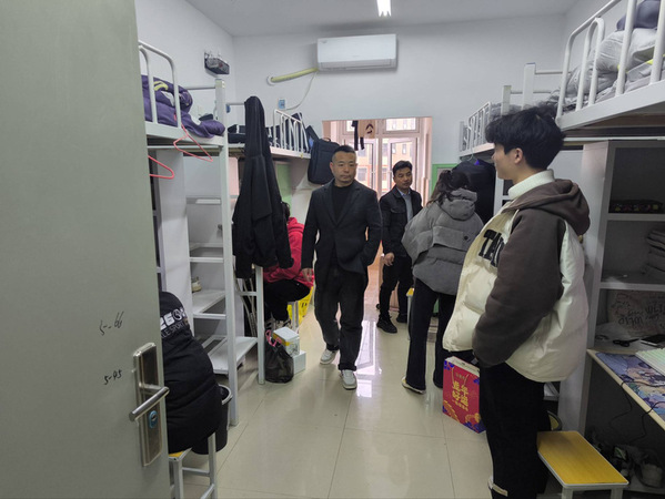 在走访过程中,老师们与同学们亲切交流,询问了同学们寒假期间的学习生活情况,了解学生新学期的计划打算,主动关心同学们学习和生活上的需求,倾听他们在寝室生活中遇到的困难和问题,并叮嘱同学们加强身体锻炼,做好个人安全卫生防护,保持良好生活习惯。同时,还提醒同学们注意宿舍用电安全,及时排查安全隐患,强化网络安全意识等。