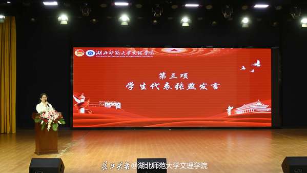 学生代表张燕以“时代潮流汹涌,青年奋勇担当”为题,作了主题演讲,她提出青年担当要有情怀、有勇气、有睿智,大家应在担当中经受锤炼,在尽责中蓬勃生长,让青春在筑梦的征程中熠熠生辉。