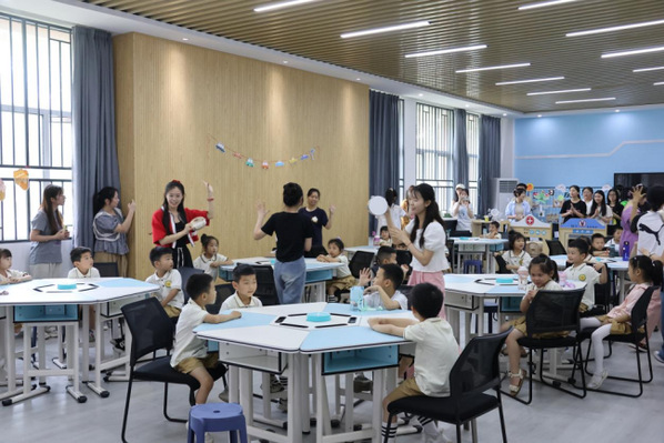 按“一班一活动,一师一幼儿,一室一指导”的原则,贴合实训室的特点,活动在早期阅读实训室、蒙台梭利实训室、保育实训室、手工实训室、智慧幼儿园实训室、奥尔夫实训室和物理演示实验室同时进行。大学生们精心策划了活动,包括科技展览、皮影戏、手工制作、音乐游戏、趣识动物、娱乐互动等。这些活动不仅推动孩子们的能力发展,还增进了师生的互动与交流。孩子们在活动中展现出高昂的热情和积极性,他们与老师一起完成任务,在快乐中接受知识,在观察中学会思考。