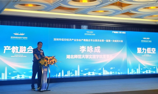会上,李咏成代表成员单位就低空经济产业发展与校企合作发表了演讲。他详细介绍了我校在专业转型、服务区域经济和科技发展方面的积极探索。他指出,产教融合的核心意义在于实现教育与产业的深度协同和无缝对接;基本诉求是使学生“毕业即就业,上班就上手”,为产业培养即插即用的合格人才;主要途径是通过校企联合制定人培方案,共同优配师资,共同建立实习实训环境,定向嵌入产业或企业的专业技术课程,以“校中厂、厂中校”的形式开展教学活动。教育教学融合通识教育、专业技能培养、企业文化等内容,尽可能缩短教室到岗位的距离,打通大学生就业的最后一公里。面对低空经济产业的蓬勃发展,学校将与业界进一步深度合作,共同培养具备实践能力和创新精神的高素质人才,为低空经济产业的发展提供支撑。