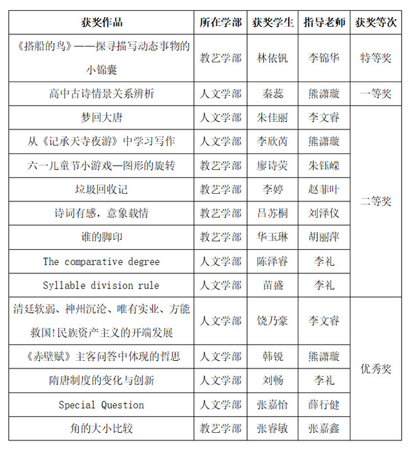 本网讯(通讯员 黄蓓佳)近日,第五届全国师范生微课大赛获奖名单公布。我校选拔推荐的微课参赛作品获得佳绩,荣获特等奖1个、一等奖1个、二等奖8个、优秀奖5个,我校荣获“优秀组织单位”,教育与艺术学部李锦华荣获“优秀指导教师”称号。