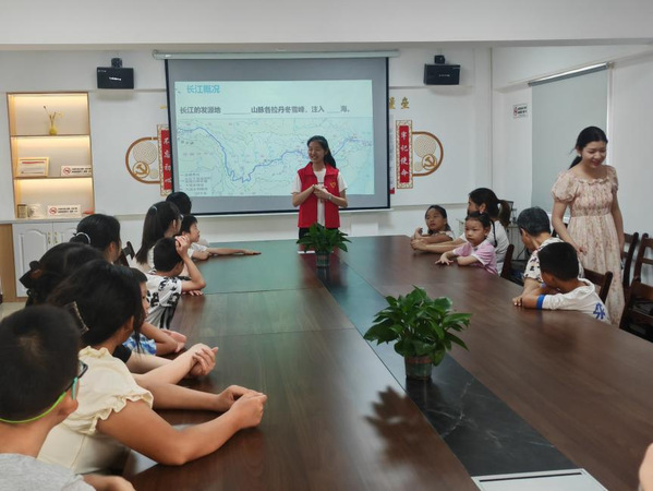 7月11日,在黄石市汪仁镇徐斌村,“寻脉长江”宣讲团开展了一场以“探寻长江奥秘,守护生命之源”为主题宣讲活动,为小朋友们带来了一堂生动且富有意义的长江环保课。