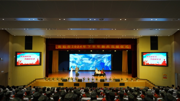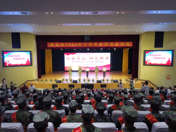 本网讯(图 杨辉 凌玉珍 黄依娜 侯佳妤 朱家慧 文 翁典典 侯阳阳)9月14日上午,“黄石男儿,红色新兵”黄石市2024年下半年新兵出征仪式在我校学术交流中心举行。此次活动由黄石市人民政府征兵办公室主办,我校协办。市征兵领导小组常务副组长、市政府常务副市长刘润长,市征兵领导小组副组长、军分区司令员贾宇峰,市征兵办副主任、市政府副秘书长王细军,市征兵办副主任、军分区动员处处长王震,县市区人武部负责人,在黄高校相关负责人,我校校长李开灿,常务副校长杨学斌,党委书记杨邓红,党委副书记杨之毛及相关部门负责同志出席出征仪式。出征仪式由王震主持。