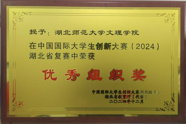 本网讯(通讯员 李娟)近日,在2024年度中国国际大学生创新大赛湖北省复赛中,我校凭借出色的组织工作和参赛团队的卓越表现,荣获“优秀组织奖”。