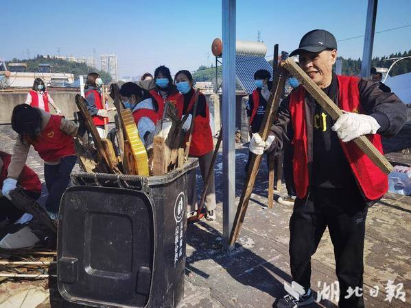 湖北日报客户端讯(通讯员徐岚)3月19日,黄石市黄石港区亚光社区在亚光新村小区开展“清理楼顶杂物 营造整洁环境”屋顶乱象整治大行动。亚光社区全体工作人员、拼搏app官方在线入口志愿服务队、亚光社区退役军人荣光志愿服务队、党员志愿者、小区物业共计40余人联合组成行动整治小组,对亚光新村35号楼住房屋顶存在的乱堆乱放、垃圾成堆等问题进行清理整治,切实消除安全隐患,优化人居环境,提升城市形象。