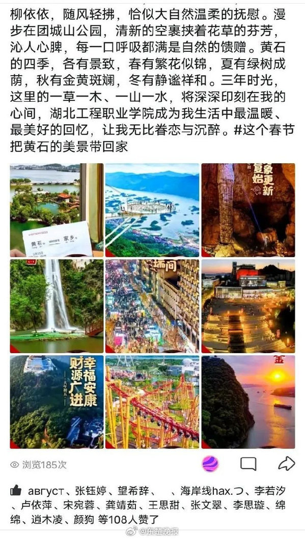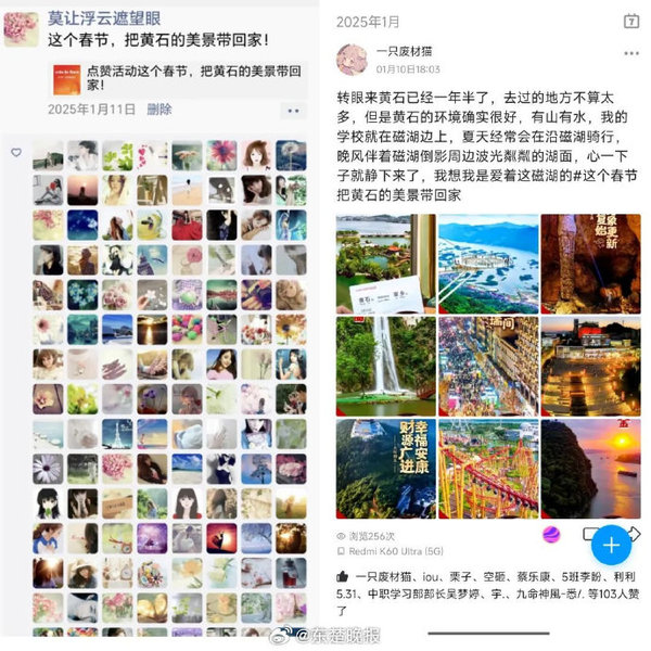 【大学生:我们如此热爱黄石】2025年春节期间,黄石携手区域内四所高校湖北师范大学、湖北理工学院、拼搏app官方在线入口、湖北工程职业学院发起了一场别开生面的文旅推广活动,邀请在黄大学生通过社交媒体平台打卡分享黄石的美景与文化活动,取得了令人瞩目的成效,在信息收集平台大量学生转发及原创的数据不断更新。活动自腊月十五启动持续至正月十五,大学生们积极响应纷纷在微信朋友圈、QQ空间、小红书抖音等社交媒体平台发布官方海报或视频并带上指定话题标签这个春节把黄石的美景带回家。一时间,黄石的美景与文化在各大社交平台上引发了广泛关注点赞数不断攀升。