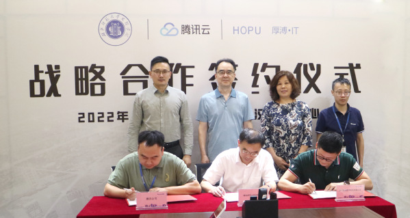 2022年6月23日,我校与腾讯云计算(北京)有限责任公司、武汉厚溥数字科技有限公司在腾讯武汉研发中心举行“产教融合共建腾讯云大数据产业学院”签约仪式。学校董事长李咏成、院长李开灿、常务副院长杨学斌、副院长张志华、副院长王胜国出席签约仪式。