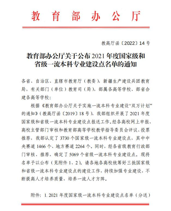 近日,教育部办公厅公布了《关于2021年度国家级和省级一流本科专业建设点名单的通知》(教高厅函〔2022〕14号),我校计算机科学与技术专业入选省级一流本科专业建设点。至此我校共有电子信息工程、英语和计算机科学与技术专业等三个专业获批省一流专业建设点。