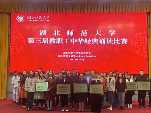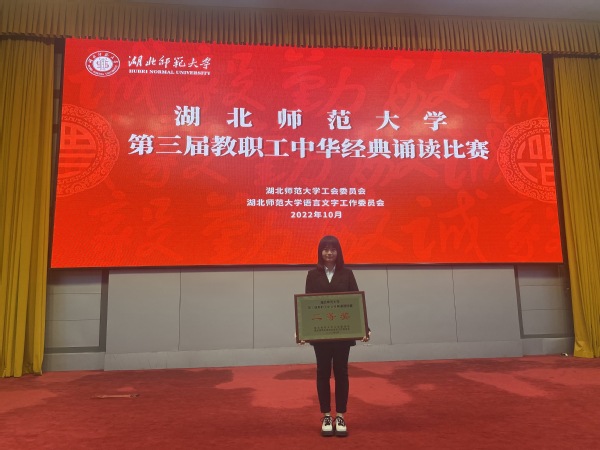 本网讯(通讯员 柯康敏)10月27日下午,湖北师范大学第三届教职工中华经典诵读在教育大楼学术报告厅举行,我校人文学部丁书嫚老师朗诵的作品《读中国》荣获二等奖。