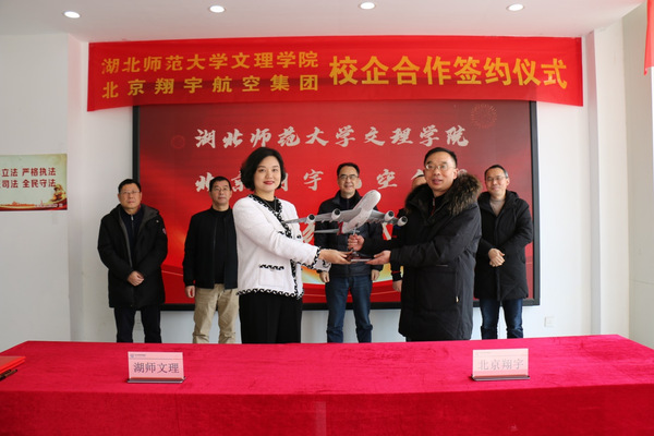 我校常务副院长杨学斌、北京翔宇航空集团副总裁余清华共同签署了《合作共建翔宇航空产业学院协议》,并赠送飞机模型作为纪念。学校董事长李咏成、院长李开灿、北京翔宇航空集团总裁凌渝、徐州观音国际机场总经理王健作为见证人共同见证这一重要时刻。