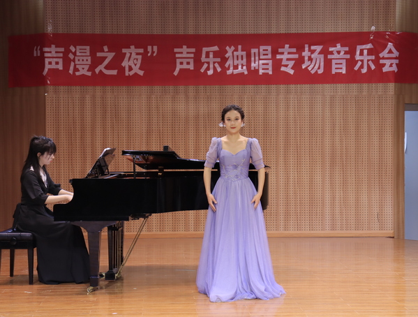本网讯(通讯员 李湘湘)2023年4月3日晚7点,我校在大学生活动中心302音乐厅举办了大学生艺术节之“声漫之夜”声乐独唱专场音乐会,教育与艺术学部全体师生齐聚一堂,共享音乐盛宴。本次活动由学部王文主任,李先华书记总策划,旨在拓展大思政课建设,培养学生爱国情怀,展现学生青春活力。