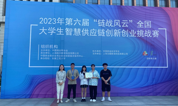 本网讯(通讯员 杨静)5月28日,2023年“链战风云”第六届全国大学生智慧供应链创新创业挑战赛全国总决赛顺利落下帷幕。我校经管学部张甜、吕彩云老师指导,武文彦,何成、朱元亮、张燕组成的光速队获得了本科组团体总决赛铜奖,挑战赛一等奖;杨林海、全永鑫、谢显根、黄颜彪组成的四个葫芦娃队获挑战赛三等奖,创造了我校参与此项赛事以来的最好成绩。