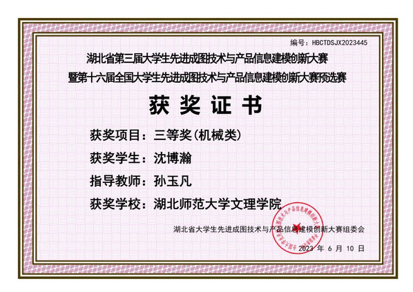 本网讯 (通讯员 邢凯)5月27日,由湖北省工程图学学会主办,华中科技大学承办的“湖北省第三届大学生先进成图技术与产品信息建模创新大赛”暨“第十六届大学生先进成图技术与产品信息建模创新大赛省级预赛”成功举办,我校东风悦享智能汽车产业学院荣获2项三等奖。