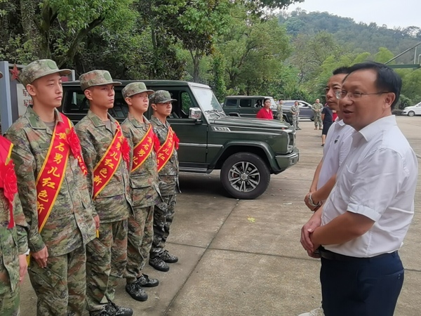 本网讯 9月14日上午,黄石市军事训练基地举行“黄石男儿 红色新兵”2023年下半年新兵出征仪式。我校8名学子响应号召参军入伍。学校党委书记杨邓红代表学校为战士送行。