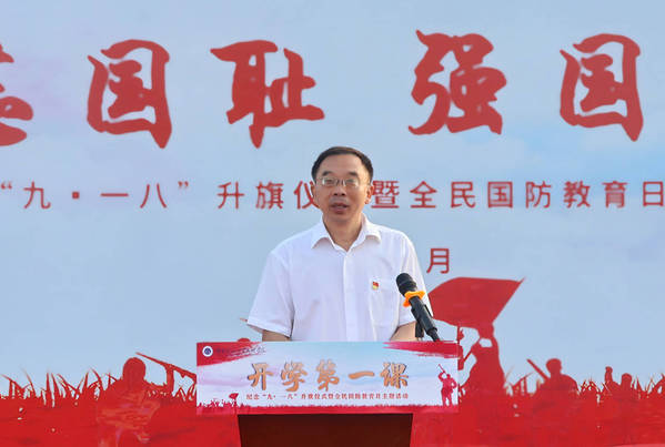 本网讯(文 杨思琦 图 梁宏滨 高雨欣 朱羽杰 张欧静 朱文杰)为激励和引导广大团员青年铭记历史、缅怀先烈,进一步加强新生爱国荣校教育,扎实开展全民国防教育,9月18日清晨,我校举行2023级新生9.18主题升旗仪式暨“开学第一课”活动。全体校领导,各职能部门负责人,各学部(院)主任、书记、副书记,学生工作部(团委)、团学指导老师,2022级学生代表,2023级全体新生,军训教官参加了这一仪式。