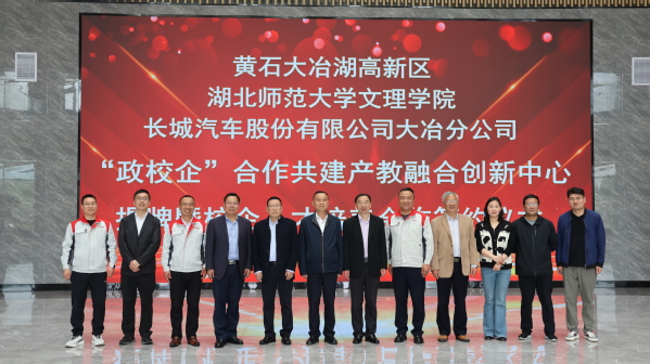 本网讯(通讯员 唐心怡)4月12日上午,我校与长城汽车大冶分公司举行校企合作签约仪式,“产教融合创新中心”“人才培养实践基地”现场揭牌。学校校长李开灿,常务副校长杨学斌,党委副书记杨之毛,大冶湖高新区党工委委员、管委会副主任许加兵,长城汽车大冶分公司负责人李伟,人力资源部部长李志援出席仪式。仪式由长城汽车大冶分公司李星毅主持。
