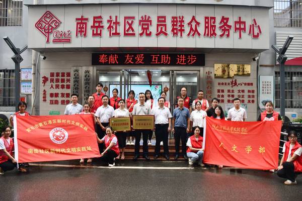 本网讯(通讯员 程胜伟)6月22日,我校人文学部“党团共建单位”、“大学生社会实践基地”在黄石港区南岳社区揭牌。校党委书记杨邓红、人文学部负责人,南岳社区南岳社区第一书记、市城发集团副总经理崔向云,黄石港区人大办公室主任喻向东,黄石港区沈家营街道党工委副书记、办事处主任杨哲,南岳社区党委书记、居委主任方和生,学生代表参加活动。