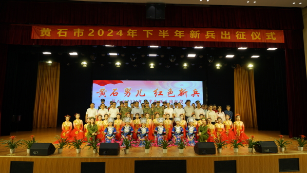 本网讯(图 杨辉 凌玉珍 黄依娜 侯佳妤 朱家慧 文 翁典典 侯阳阳)9月14日上午,“黄石男儿,红色新兵”黄石市2024年下半年新兵出征仪式在我校学术交流中心举行。此次活动由黄石市人民政府征兵办公室主办,我校协办。市征兵领导小组常务副组长、市政府常务副市长刘润长,市征兵领导小组副组长、军分区司令员贾宇峰,市征兵办副主任、市政府副秘书长王细军,市征兵办副主任、军分区动员处处长王震,县市区人武部负责人,在黄高校相关负责人,我校校长李开灿,常务副校长杨学斌,党委书记杨邓红,党委副书记杨之毛及相关部门负责同志出席出征仪式。出征仪式由王震主持。