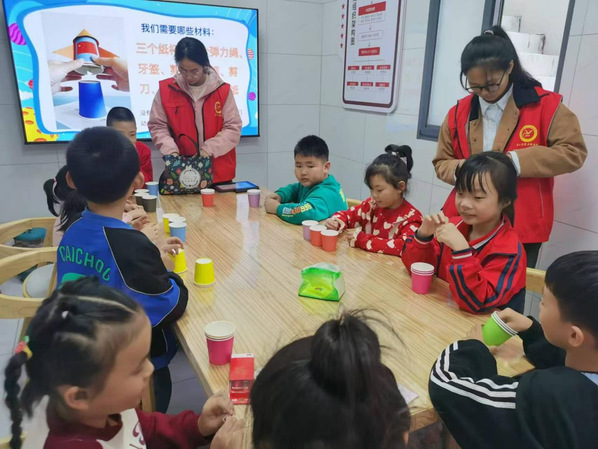 本网讯(通讯员 姜希望)深化青年聚力共同缔造,积极服务少年儿童健康成长。10月27日下午,我校经济与管理学部志愿服务队的10名志愿者按小组划分,分别前往大冶市碧桂园社区、荟萃社区以及康乐社区,在各社区文明实践站开展辖区未成年人周末课堂之“点燃飞天梦想,放飞航天理想”主题活动。
