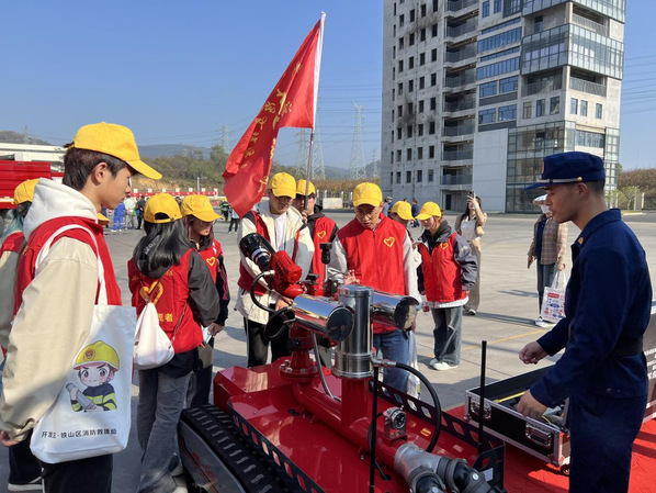 11月9日上午,黄石市2024年“119”消防宣传月活动启动式在市消防训练与战勤保障基地举行,我校100余名大学生消防志愿者及教师代表前往参加,活动现场先后开展了搜救犬综合搜救操、绳索救援上升与下降操、综合灭火救人操、火场通信综合操等4个精彩消防技能操法展示及楼层综合灭火救援演练,还设置有消防知识竞答和搜救犬互动表演区,“我们全家都很关注消防安全,有幸参加这次活动,还能‘撸’到搜救犬,近距离观看到它们如何训练、搜救,我很激动。”大学生消防志愿者王晨睿同学说。本次活动帮助同学们进一步了解消防安全知识,学习了防火自救常识,提升了消防安全意识。