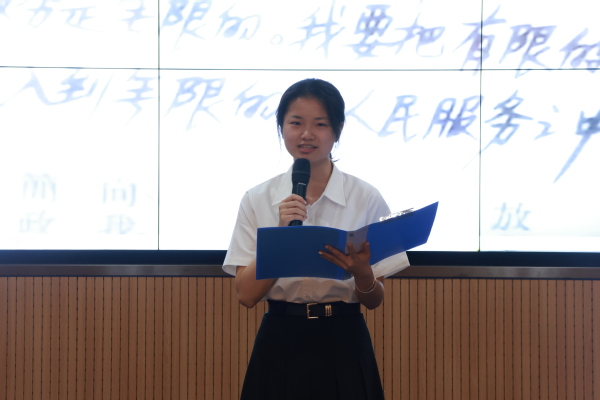 B组选手吴烨讲述着身边的“雷锋精神”践行者,号召同学们挺膺担当,用行动续写雷锋故事;孙芳华介绍了我校“只郢有爱”支教团队和雷锋月公益集市的实践故事,将雷锋精神具象化地呈现在观众面前;田玉兰以自己的故事为蓝本,讲述了懵懂“顽石”在学姐的引路下被“点燃”的成长蜕变。
