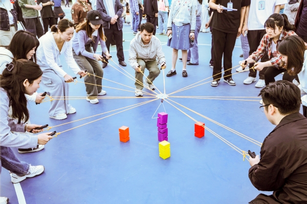 “凝心铸魂”比赛中,参赛教师齐心协力,利用吊绳精准垒放积木,顺利完成挑战。该项目不仅考验体力,更注重团队的平衡能力与默契配合。随后的“携手共进”比赛,教师们沉着冷静、耐心协作,凭借出色的团队表现成功完成任务。最后的拔河比赛将现场氛围推向高潮,我校教师科学安排站位,灵活调整战术,心往一处想、劲往一处使,充分展现了“拔”出精彩、“河”作共赢的团队精神。