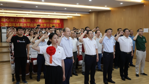 本网讯 6月30日下午,我校在图书馆报告厅召开庆祝中国共产党成立104周年暨表彰大会。全体校领导,副处级以上党员干部,各党支部书记(副书记),教职工党员及学生党员代表参加了此次会议。会议由党委副书记、纪委书记许光主持。