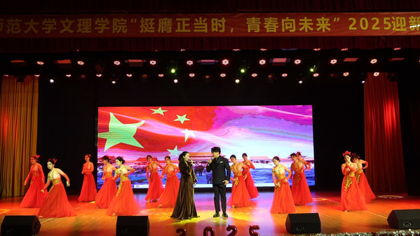 晚会分为“寻梦·起航”“燃梦·山海”“逐梦·青春”三个篇章,12个节目融合艺术创意与青春朝气,生动展现了我校师生昂扬向上的精神风貌与深厚的家国情怀。