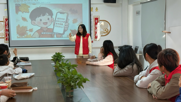 本网讯(通讯员 程胜伟)10月25日,我校人文学院学生党支部联合团学青年志愿服务队,走进南岳社区开展“温暖重阳 感恩有您”周末课堂志愿服务活动。