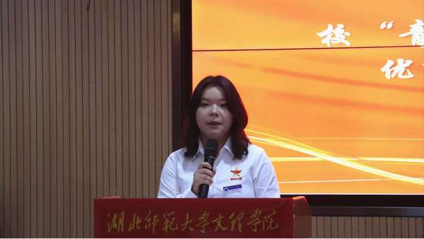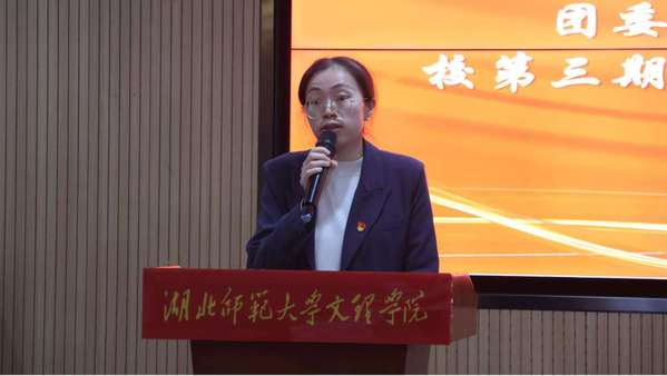 第二期“青马工程”培训班优秀学员代表徐微发言。她分享了在培训期间通过理论学习筑牢思想根基、参与社会实践深化认知的成长经历,并寄语新学员珍惜学习机会,努力成为有理想、敢担当的新时代青年。