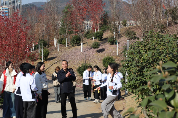 赛前,教职工们前往学校后山枫林参与“金山枫林寻宝”暖场活动,在轻松寻访“入场券”的过程中,共同感受秋日校园的自然美景,现场洋溢着欢快活泼的氛围。