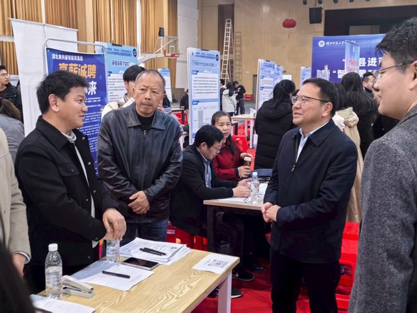 本网讯(图 鲁扬浩 孟昕悦 文 刘昕婷)3月25日上午,学校与黄石市人力资源和社会保障局在风雨操场二楼联合举办“才聚荆楚·共建支点·百县进百校联万企”暨“智汇黄石高校行”2026届毕业生春季综合类校园招聘会。招聘会吸引了省内外115家优质企业参会,提供涵盖电子科技、智能制造、汽车产业、现代金融、教育传媒等领域的6215个就业岗位,吸引了3000余名毕业生到场求职。