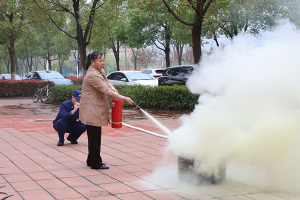 在实操培训环节,朱裕良手把手指导参训人员进行“灭真火” 实战体验。现场气氛热烈,参训人员依次上阵,严格按照规范流程操作随着火焰腾起,参训人员迅速提起灭火器,拔销、瞄准、按压,动作一气呵成迅速、准确地扑灭了模拟火源。大家一致表示,通过亲身体验,不仅有效克服了面对火情的紧张心理,更切实掌握了灭火器材的实际运用技能。