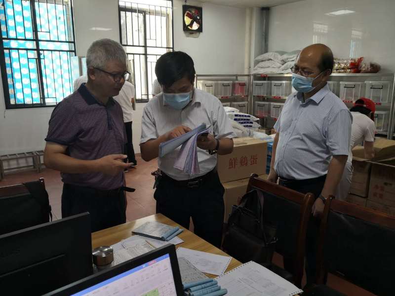 检查组一行首先察看了食堂防疫措施是否落实、工作人员是否办理健康证、是否全部落实核酸检测;对食品采购来源、存放管理、后厨环境卫生,留验制度和工作人员个人卫生等进行实地检查。然后检查了学生公寓,察看了学校防疫物资储备管理情况,并对学校“两案九制”的拟定和疫情防控资料台账进行了抽查。