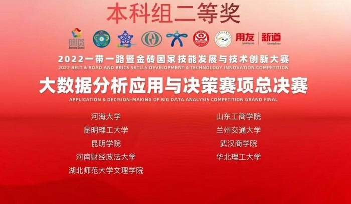 2022年10月22日至23日,“2022一带一路暨金砖国家技能发展与技术创新大赛之大数据分析与应用赛项总决赛”在线上云端举行,此次比赛历时两天,经过理论答题、案例分析与工具操作、PPT汇报与答辩等环节,我校经济与管理学部学子荣获全国二等奖。