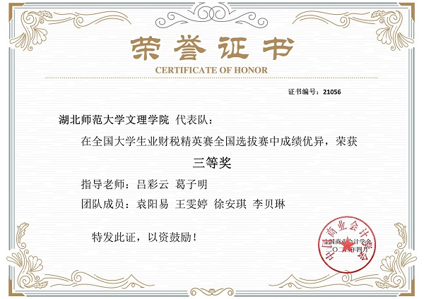 经管学子在全国大学生业财税精英赛中荣获三等奖