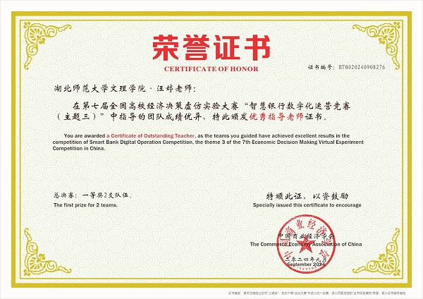 2024年第七届全国高校经济决策虚拟仿真实验大赛于913日落下帷幕。本次大赛共有全国356所院校,8508支队伍参赛,耗时3个多月的角逐,历经初赛、数据分析报告撰写评分、决赛,最终,经管学部由陈媛、汪婷老师指导的队伍获得“商业银行数字化运营”赛道的国家一等奖2项,罗尹、渣梦丽老师指导的队伍获“智慧物流创业仿真”赛道国家一等奖2项、国家二等奖2项、国家三等奖1项,区域赛获奖若干。