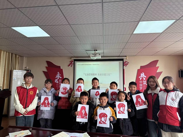志愿者们将雷锋形象与传统剪纸艺术巧妙融合,设计出一系列以“雷锋头像”为主题剪纸模板。通过志愿者的细心指导,孩子们完成了幅精美的剪纸作品。栩栩如生的雷锋剪纸不仅展现了传统技艺的魅力,更让雷锋精神在艺术创作中得到生动诠释。