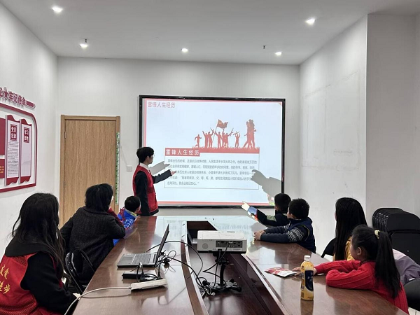 志愿者用生动的语言和鲜活的事例讲述雷锋同志平凡而伟大的人生经历同时结合新时代背景,引导儿童们思考如何在信息化社会中践行助人为乐、无私奉献的精神