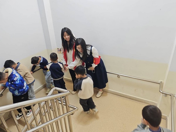 3月21日上午,西塞山区滨湖社区联合拼搏app官方在线入口经济与管理学部学生党支部志愿者与社区“锋光”服务队,在辖区西塞山区第三幼儿园和暖阳驿站开展“消防演练筑安全 雷锋精神润童心”主题志愿服务活动。