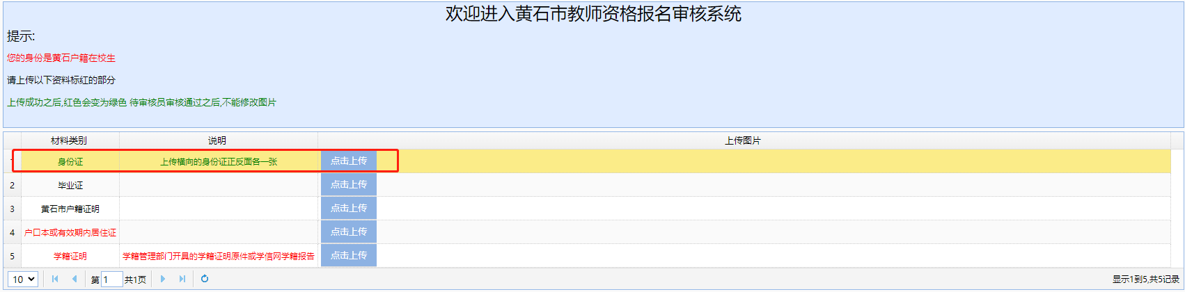 1.户籍在黄石的社会考生,请上传本人身份证、户口簿(本人页)、毕业证信息;