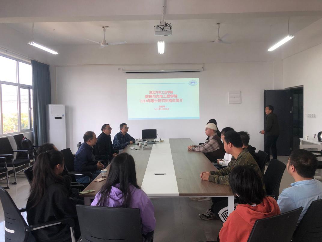 10月20日下午,湖北汽车工业学院数理与光电工程学院材料物理系张传坤、周原教授一行来我校开展2023年硕士研究生招生宣讲。本次宣讲张传坤教授担任主讲。理工学部部分同学参加了此次宣讲会。