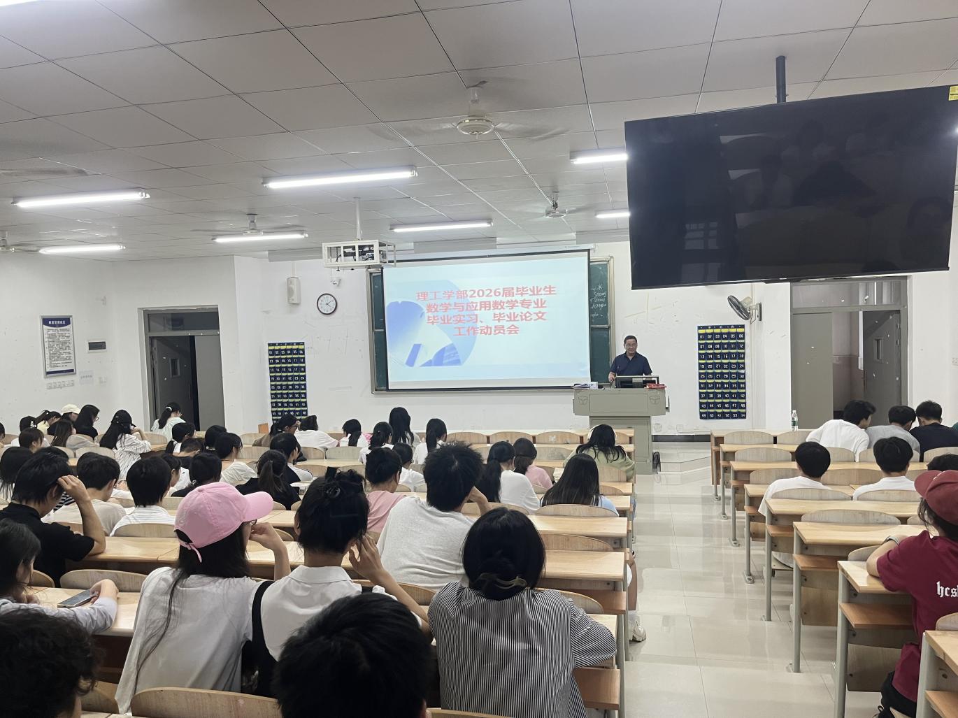 2025620日下午,理工学部举办了2025年教育实习动员大会。参加会议的有:教学与科研主任潘继斌、教学办主任余璟昭、教研室主任黄佳平和辅导员马艺静,2022级数学与应用数学专业实习生参加了动员大会。